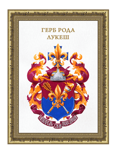 уникальный герб, исполненный вручную в стиле «графика» на бумаге формата А4 красками зарубежного производства (акварель/гуашь)