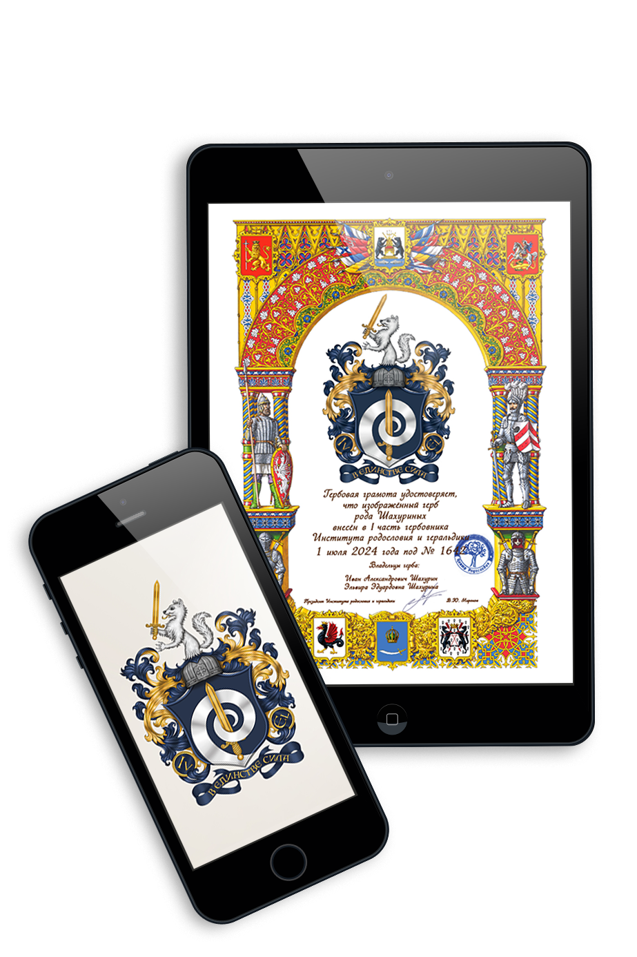 официальную грамоту о внесении в гербовник ИРГ формата 30х40 см;